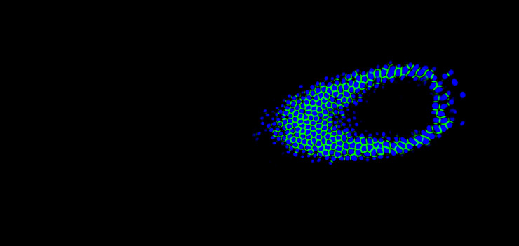 然后,我们加入了代表轮廓的通道,轮廓的宽度取决于细胞核的大小。这些掩膜 + 简单的分水岭后置处理算法让我们在公开榜单上大约获得了 525 分。尽管这并不是一个大的突破,但是它给了我们对正确方向的启示。