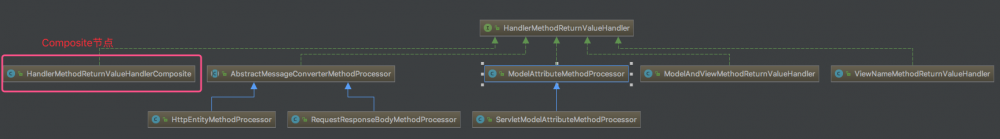 承接上文调用 HandlerMethod 之后会获取到对应的返回值,对返回值的解析使用的是 HandlerMethodReturnValueHandler 接口,该接口的设计与参数解析器 HandlerMethodArgumentResolver 一模一样,都是组合设计模式,使用树枝节点来组合所有的解析器,下面开始分析.