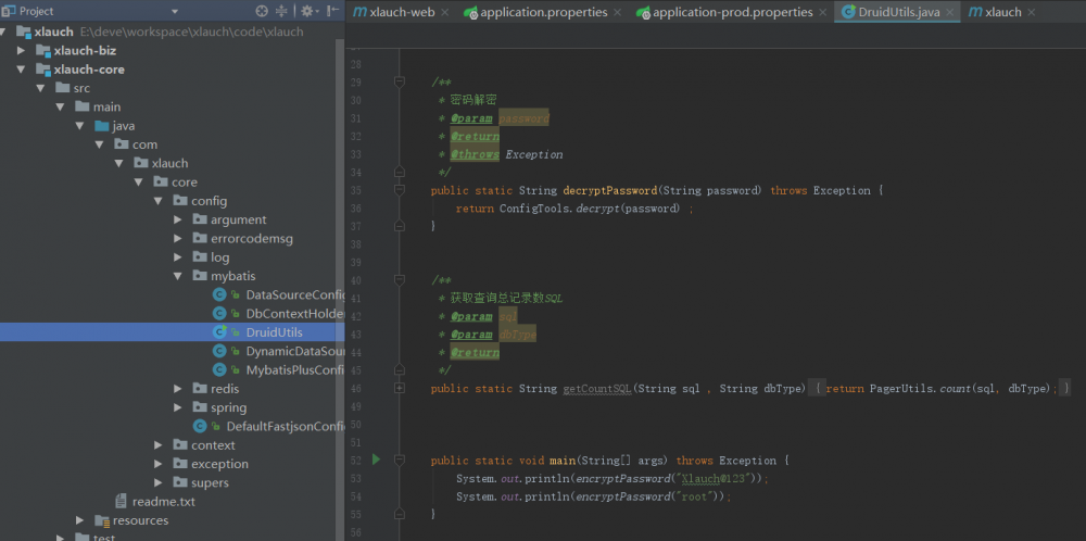 # 主数据源spring.datasource.druid.primary.url=jdbc:mysql://localhost/xlauch?useUnicode=true&characterEncoding=utf-8&tinyInt1isBit=false spring.datasource.druid.primary.username=spring.datasource.druid.primary.password= spring.datasource.druid.primary.driver-class-name=com.mysql.jdbc.Driver# 测试数据源(用于后面测试生成功能)spring.datasource.druid.second.url=jdbc:mysql://192.168.1.250:3306/jeeframe?useUnicode=true&characterEncoding=utf-8&tinyInt1isBit=false spring.datasource.druid.second.username=root spring.datasource.druid.second.password=bNVOqb7WKLX5Bjnw+LMv92taj25KOxDimXxILPQjw42wgv+1lHzOH8kr97xDwWdhpY67QuYCS7sWN4W46YbkFA== spring.datasource.druid.second.driver-class-name=com.mysql.jdbc.Driver
