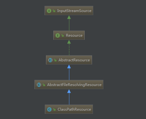 可以看到 ClassPathResource 的基本接口是 InputStreamSource 和 Resource