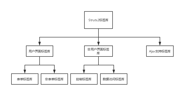 Struts2把所有标签都定义在一个s标签库中,虽然Struts2把所有的标签都定义在URI为 /struts-tags 的空间下,但我们依然可以对Struts2标签进行简单的分类。从大的范围来说,Struts2可以将标签按下图所示,分为三大类: