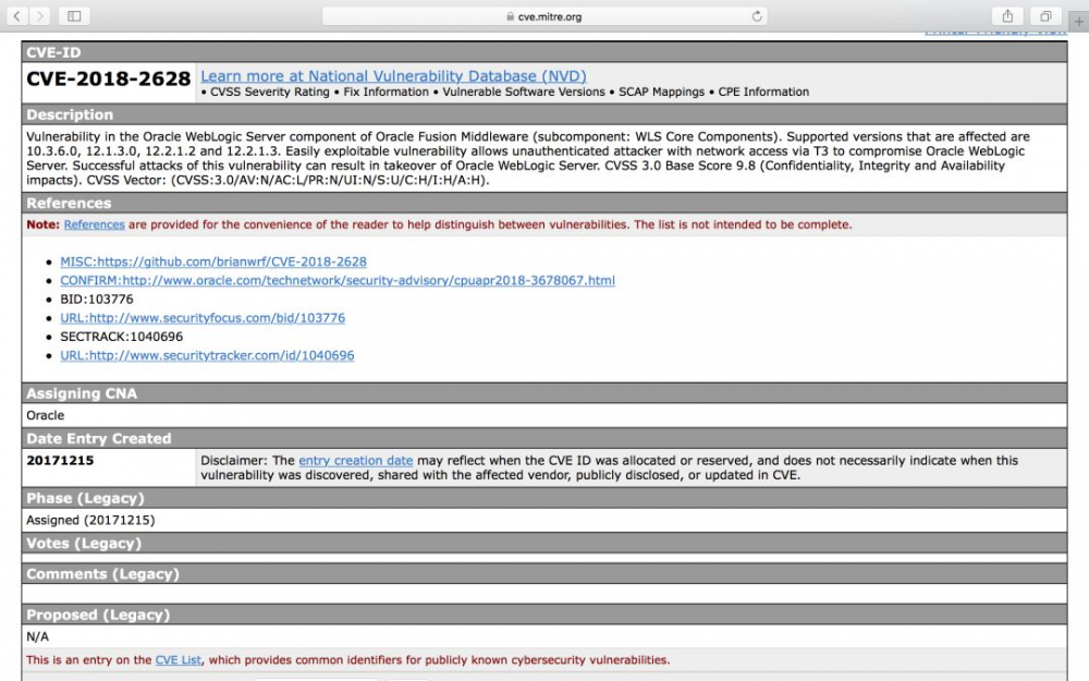 修补列表中就有CVE-2018-2628(https://cve.mitre.org/cgi-bin/cvename.cgi?name=CVE-2018-2628):