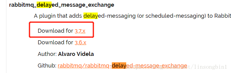 千万记住,一定选好版本号,由于我使用的是RabbitMQ 3.7.4,因此对应的 rabbitmq_delayed_message_exchange 插件也必须选择3.7.x的。