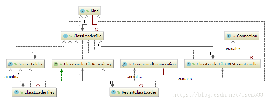 虽然这里看着有很多个类,但实际上本地开发中只会用到 RestartClassLoader 一个类,其他几个类是针对远程自动重启设计的,所以本章先不介绍,后续涉及远程重启时再说。