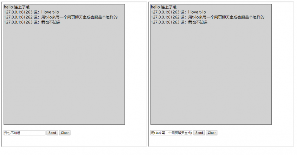 然后再打开page/index.html,就能看到下面这个界面了(前提是前面8步要完成),如果你不想完成前面8步,你同样可以在 https://gitee.com/tywo45/tio-websocket-showcase 中找到前8步所需要的java代码。