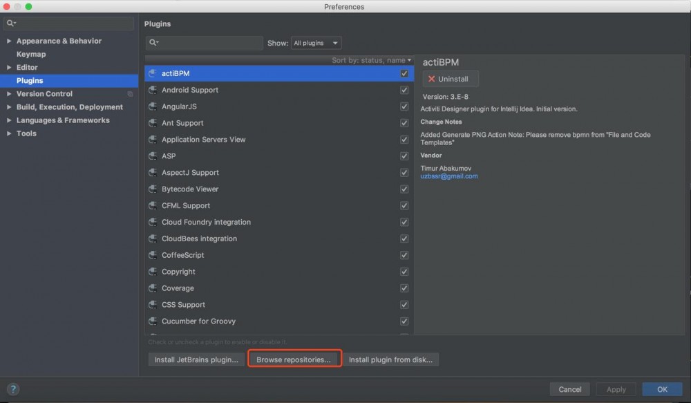 2.在idea的settings(windows)或者Preferences(mac),下找到plugins菜单,点击Browse repositories,如图