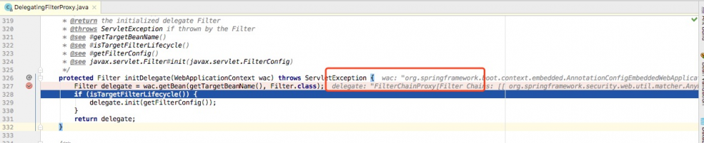protected Filter initDelegate(WebApplicationContext wac) throws ServletException {