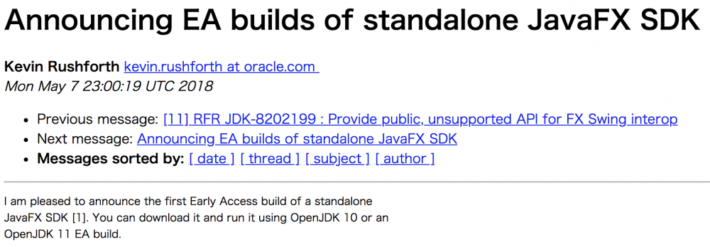 JavaFX SDK EA 版下载地址: http://jdk.java.net/openjfx/