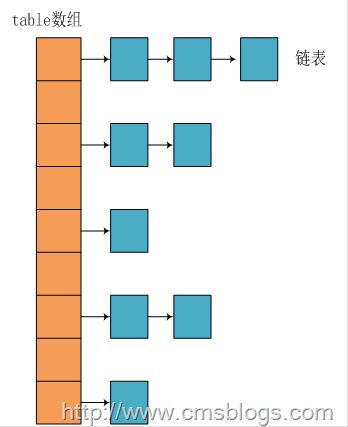 我们知道在Java中最常用的两种结构是数组和模拟指针(引用),几乎所有的数据结构都可以利用这两种来组合实现,HashMap也是如此。实际上HashMap是一个“链表散列”,如下是它的数据结构: