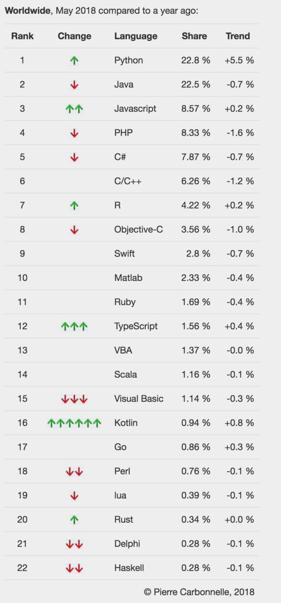 完整的排名请查看:PYPL PopularitY of Programming Language