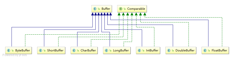 在Java NIO中使用的核心缓冲区如下(覆盖了通过I/O发送的基本数据类型:byte, char、short, int, long, float, double ,long):