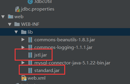 2、解压后,找到lib目录下的standard.jar和jstl.jar文件,复制文件,把它们粘贴到你的WEB_INF/lib目录下如图
