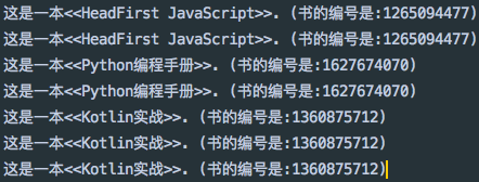 System.out.printf("这是一本<<Kotlin实战>>. (书的编号是:%s)/n", System.identityHashCode(this));