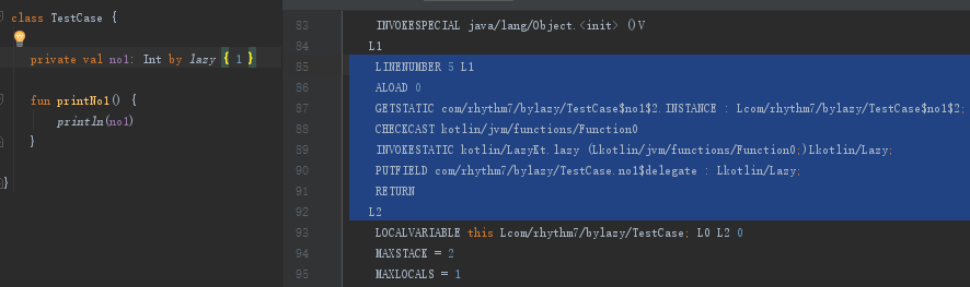 public <init>()V L0 LINENUMBER 3 L0 ALOAD 0 INVOKESPECIAL java/lang/Object.<init> ()V L1 LINENUMBER 5 L1 ALOAD 0 GETSTATIC com/rhythm7/bylazy/TestCase$name$2.INSTANCE : Lcom/rhythm7/bylazy/TestCase$name$2; CHECKCAST kotlin/jvm/functions/Function0 INVOKESTATIC kotlin/LazyKt.lazy (Lkotlin/jvm/functions/Function0;)Lkotlin/Lazy; PUTname com/rhythm7/bylazy/TestCase.name$delegate : Lkotlin/Lazy; RETURN L2 LOCALVARIABLE this Lcom/rhythm7/bylazy/TestCase; L0 L2 0 MAXSTACK = 2 MAXLOCALS = 1