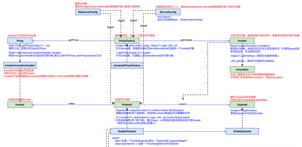 ReferenceConfig 调用 JavassistProxyFactory 的getProxy方法为入口,传入Invoker; InvokerInvocationHandler ,并使用dubbo自己的动态代理工具Proxy最终生成代理对象T ref;