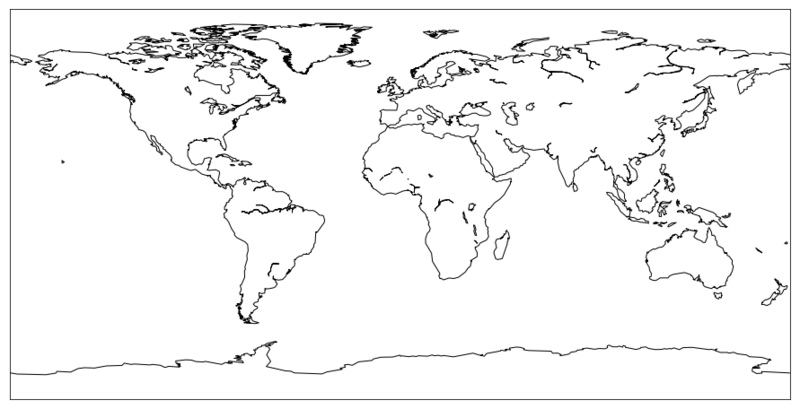 import matplotlib.pyplot as plt from mpl_toolkits.basemap import Basemap plt.figure(figsize=(16,8)) m = Basemap() m.drawcoastlines() plt.show()