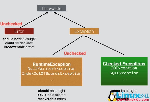 在 Java规范 中,对非受查异常和受查异常的定义是这样的: