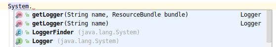 System.Logger logger = System.getLogger(TestLogging.class.getName()); logger.log(System.Logger.Level.INFO, "Hello Java 9 Platform Logging API");