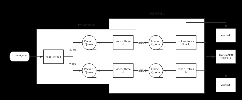 在 read_thread 中读取文件,将读出来的 AVPacket 根据不同的通道,压入对应的 Packet_Queue 中