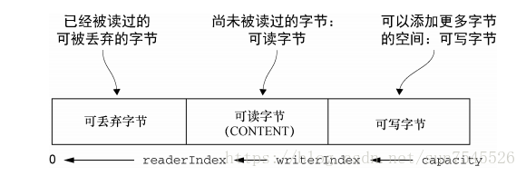 可丢弃字节的分段包含了已经被读过的字节。通过调用 discardReadBytes()方法,可以丢弃它们并回收空间。这个分段的初始大小为 0,存储在 readerIndex 中,会随着 read 操作的执行而增加。