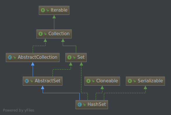 public class HashSet<E> extends AbstractSet<E> implements Set<E>, Cloneable, java.io.Serializable {