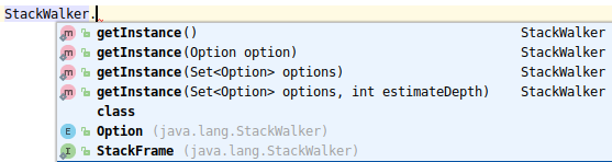 Java 9 为我们提供了 StackWalker , StackWalker.Option 和 StackWalker.StackFrame 类