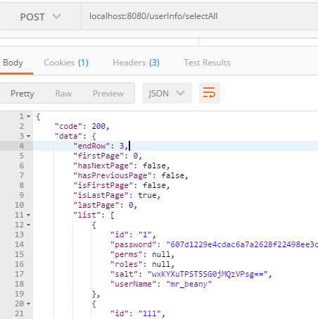 输入localhost:8080/userInfo/selectAll