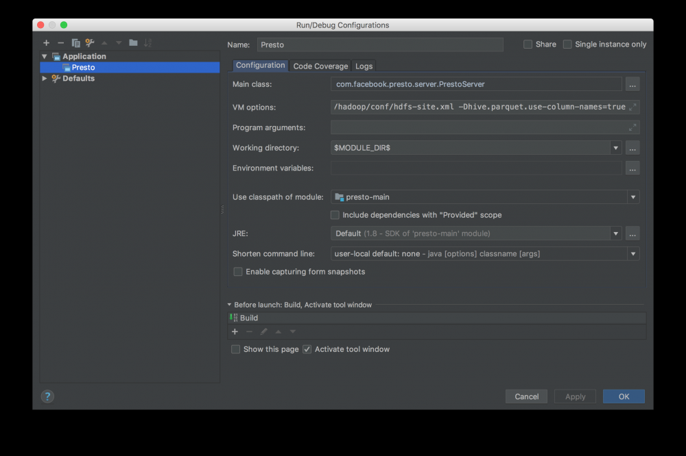如果需要修改配置,配置文件在:presto-main/etc 目录下
