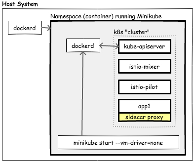 docker run --privileged --rm -it quay.io/aspenmesh/minikube-dind docker exec -it <container> /bin/bash # kubectl get nodes <....> # kubectl create -f https://k8s.io/docs/tasks/debug-application-cluster/shell-demo.yaml # kubectl exec -it shell-demo -- /bin/bash