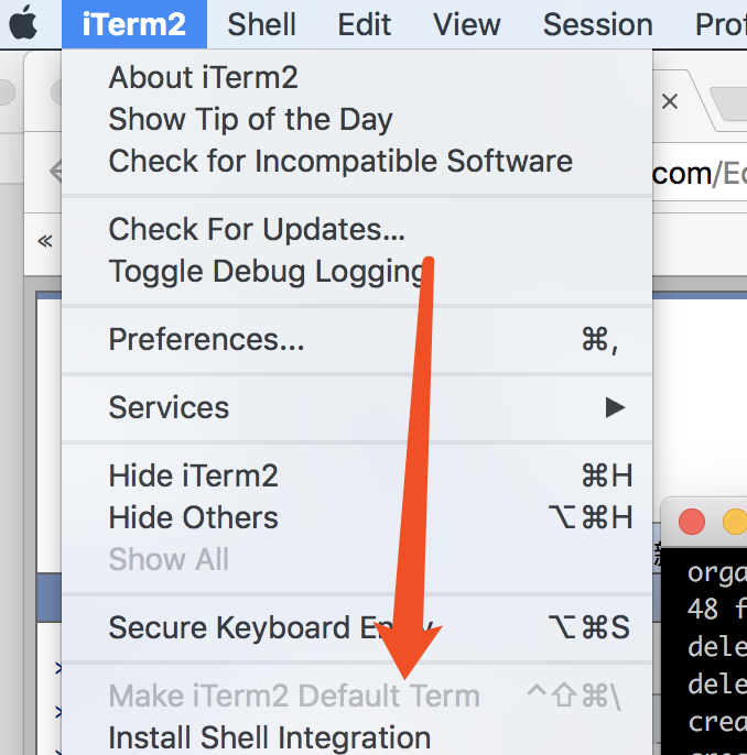 将iTem2设置为默认终端:(菜单栏)iTerm2 -> Make iTerm2 Default Term