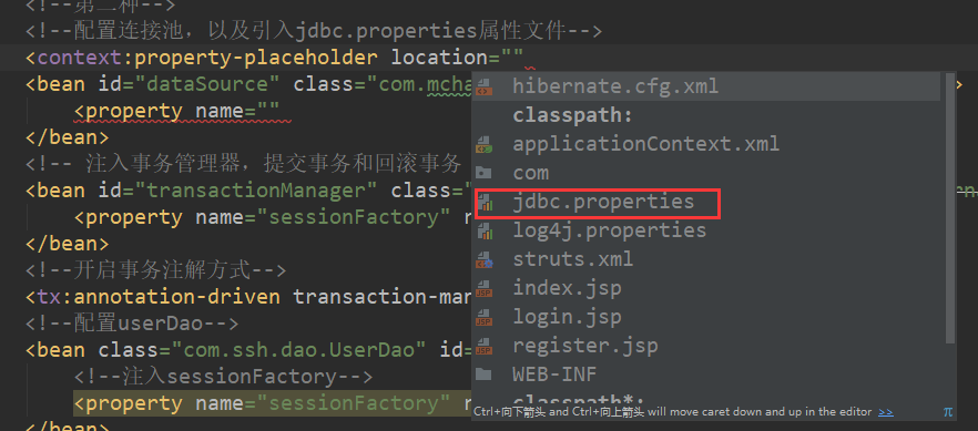 因为hibernate.cfg.xml中配置的是数据库的相关配置,以及映射关系,关于这部分配置完全可以在applicationContext.xml中进行整合。数据库的4要素也可以单独提取到jdbc.properties文件中。