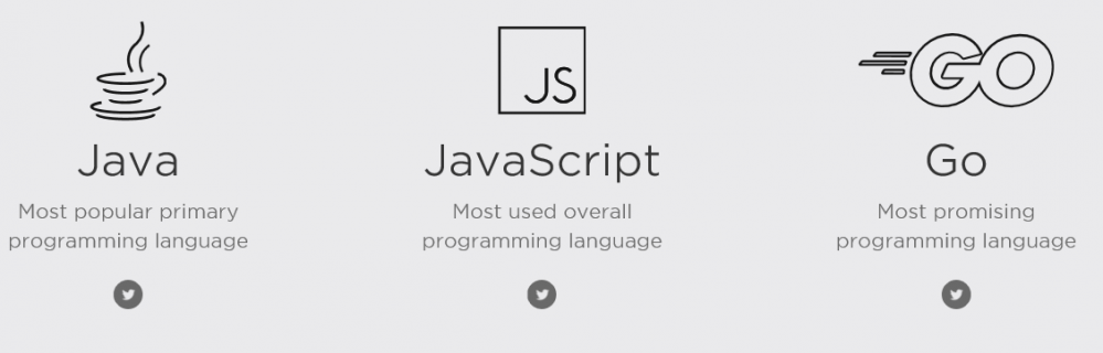 在2018年初, jetbrains 对6000名开发人员进行了调查,发布了开发者生态系统报告。报告称Java是最受欢迎的编程语言,JavaScript的是使用最多的编程语言,Go语言是最有希望的编程语言。