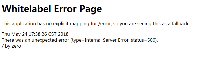 [2018-05-25 09:31:19.961][http-nio-8077-exec-6][DEBUG][org.springframework.web.servlet.mvc.method.annotation.AbstractMessageConverterMethodProcessor][234]:Written [{timestamp=Fri May 25 09:31:19 CST 2018, status=500, error=Internal Server Error, exception=java.lang.ArithmeticException, message=/ by zero, path=/error/ajaxError}] as "application/json" using [org.springframework.http.converter.json.MappingJackson2HttpMessageConverter@2729eae5]