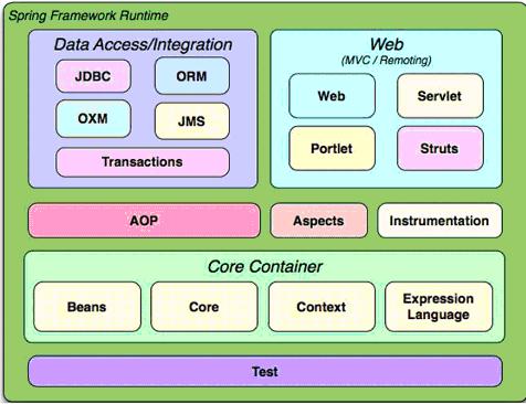 Test模块: Spring支持Junit和TestNG测试框架,而且还额外提供了一些基于Spring的测试功能,比如在测试Web框架时,模拟Http请求的功能。