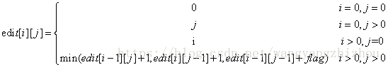 假设我们有长度分别为 i、j 的两个字符串,设编辑距离为 edit(i,j) 。接着我们看下,如果它们最后的字符相等,则编辑距离其实等于 edit(i-1,j-1) 。而如果最后的字符不相等,那么我们可以通过插入或替换来使其相等,但是不同的操作对应的代价不相同,如果插入则为 edit(i,j-1)+1 或 eidit(i-1,j)+1 ,替换则为 edit(i-1,j-1)+1 。