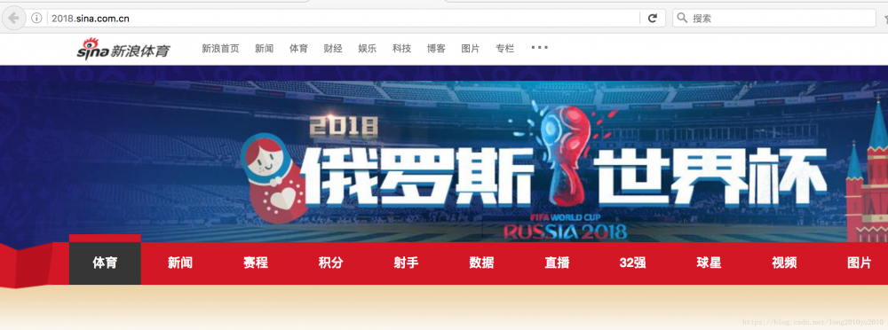 1、首先登录新浪体育的世界杯的专题首页面(http://2018.sina.com.cn/),如下所示: