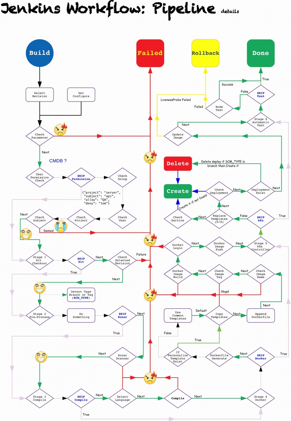 因此,在设计流程时,就完全抛弃了Jenkins内置的那几套,基于CMDB/gitlab进行权限控制, 一个很简单的思路: