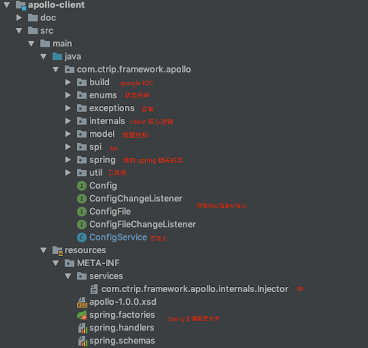 其中,核心包就是 internals 包,包含了客户端的主要功能逻辑。主要有以下功能: 0. 获取 ConfigService 服务的远程配置。