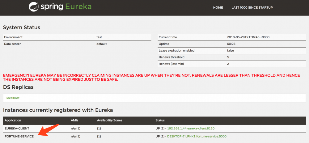 Services (get all by DiscoveryClient): [eureka- client , fortune - service] %