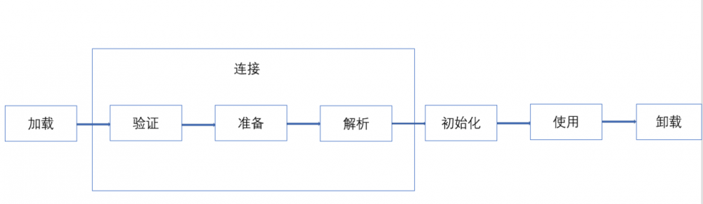 类的整个生命周期包括:加载、验证、准备、解析、初始化、使用和卸载7个阶段。
