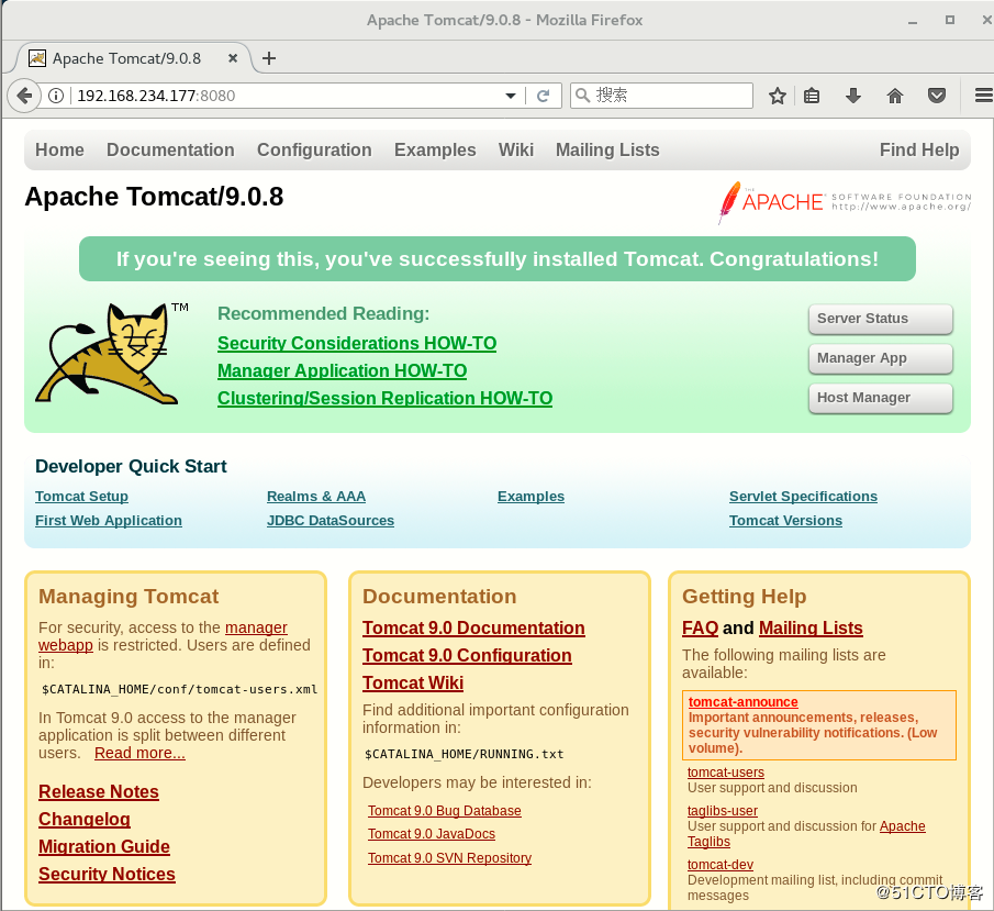 这里开启tomcat之后,用本地的火狐浏览器访问本地的IP地址测试,看能不能正常访问tomcat首页