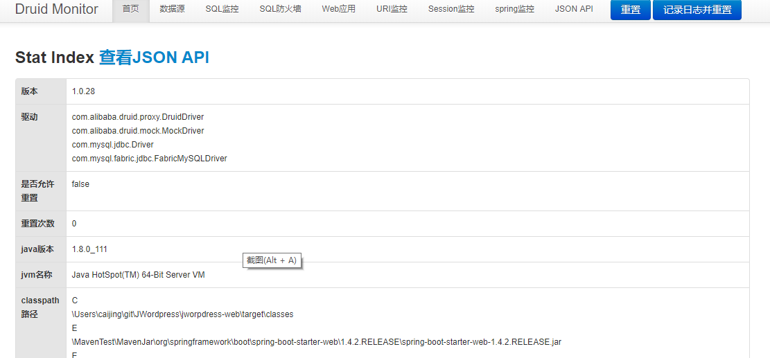 启动应用,然后访问http://127.0.0.1:8090/druid/index.html