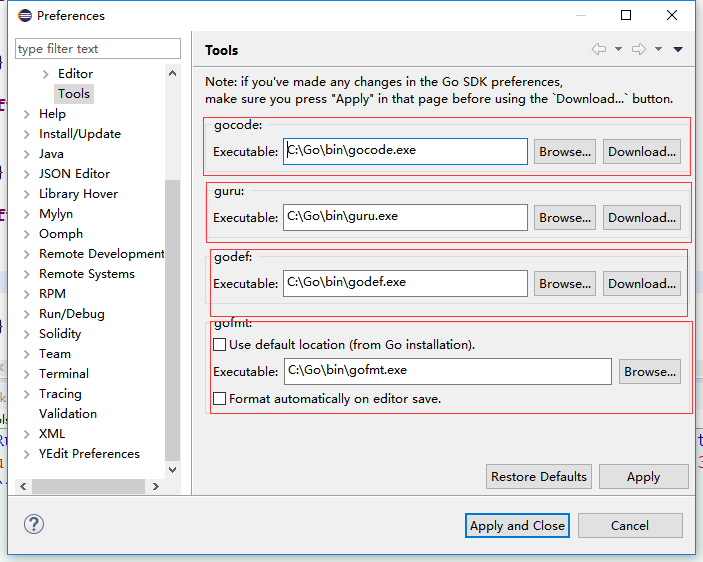 配置Eclipse的Go工具主要包括: