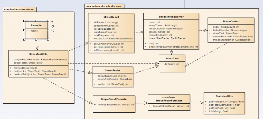 从上图可以看出StressTestUtils是和开发者打交道的最主要的类;下面来个例子