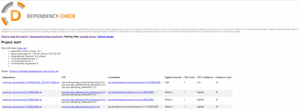 Dependency-Check 发行的版本主要有 jenkins 插件、命令行工具、 maven 插件等,详解介绍可查看 https://github.com/jeremylong/DependencyCheck ,以下是基于命令行工作模式的介绍。