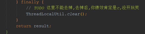 刚看到时完全不解,不知道其为什么这么说。当同事跟我解释原因,豁然开朗。细想,我们在工作使用中,如果不注意很容易就忽略这个问题。 在解释这个问题先,我们先来查看 ThreadLocal。