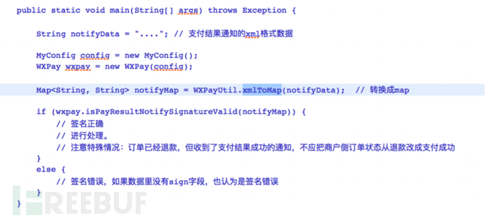 Map<String, String> notifyMap = WXPayUtil.xmlToMap(notifyData); // 转换成map