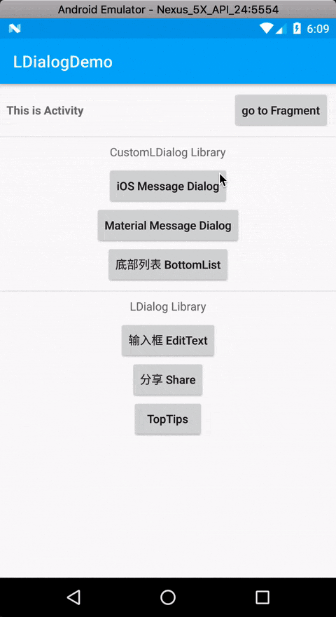 本库分为必须导入的 LDialog 和非必须的 CustomLDialog 。