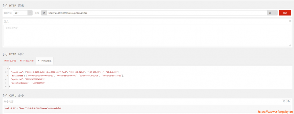 #License相关配置 license.subject=license_demo license.publicAlias=publicCert license.storePass=public_password1234 license.licensePath=C:/Users/zifangsky/Desktop/license_demo/license.lic license.publicKeysStorePath=C:/Users/zifangsky/Desktop/license_demo/publicCerts.keystore 复制代码